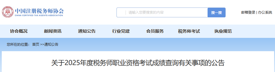 中国注册税务师协会:2025年税务师考试成绩于12月8日已公布,速来查分