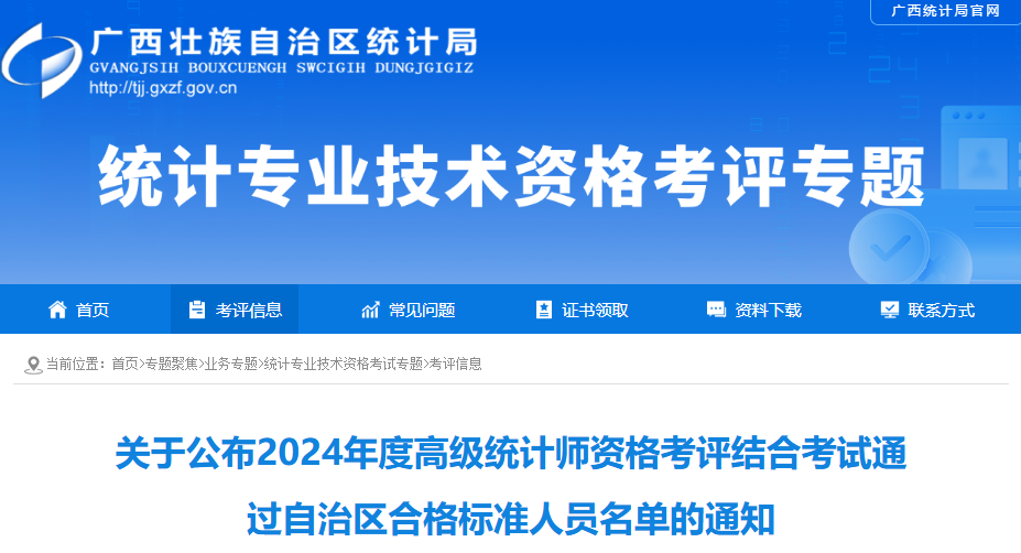 广西壮族自治区统计局发布2024年广西高级统计师合格人员名单(30人)
