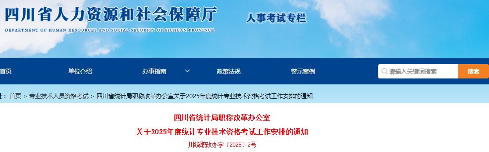 为促进统计专业技术人才队伍建设,推动统计事业科学发展,根据人力资源社会保障部、国家统计局联合印发的《全国统计专业技术资格考试办公室关于2025年度统计专业技术资格考试有关事项的通知》(统考办字〔2025〕1号)精神,现对2025年度全省统计专业技术资格考试工作安排如下:
