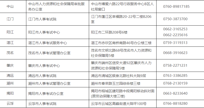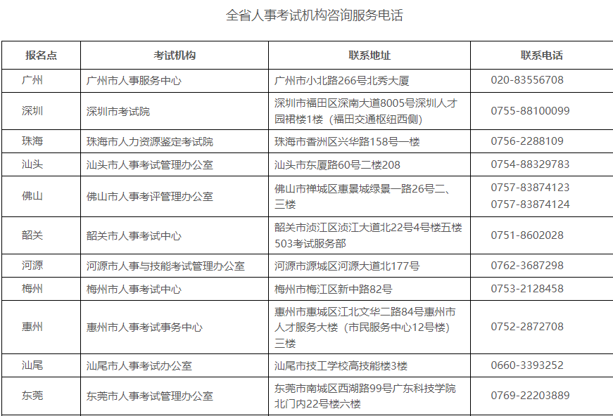 报考期间,全省各地级以上市人事考试机构开通咨询服务电话(详见附件2)。用户名或密码查询等业务事项可通过“广东省专业技术人员职业资格考试业务办理系统”(http://123.56.228.71:82/)在线申办。