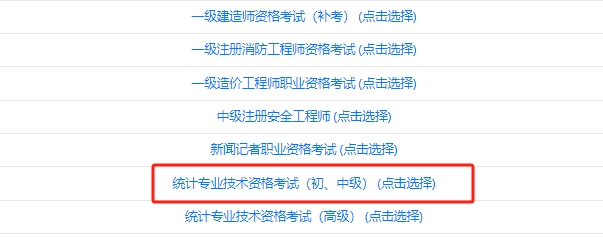 第四步:进入准考证打印界面,选择统计专业技术资格考试(初、中级),进入后根据提示打印即可