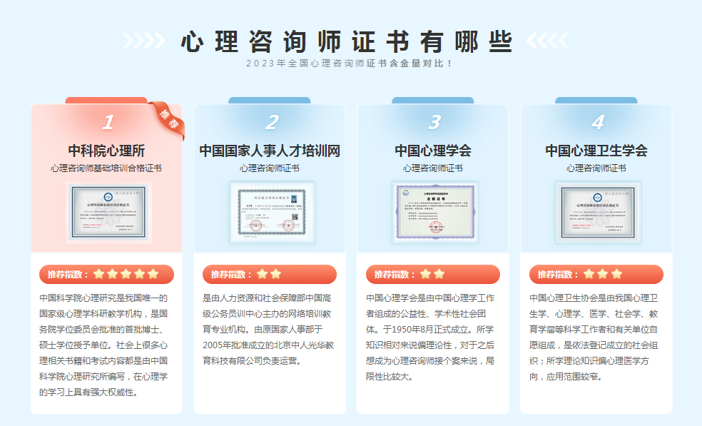 二、哪个心理咨询师证书值得报考呢