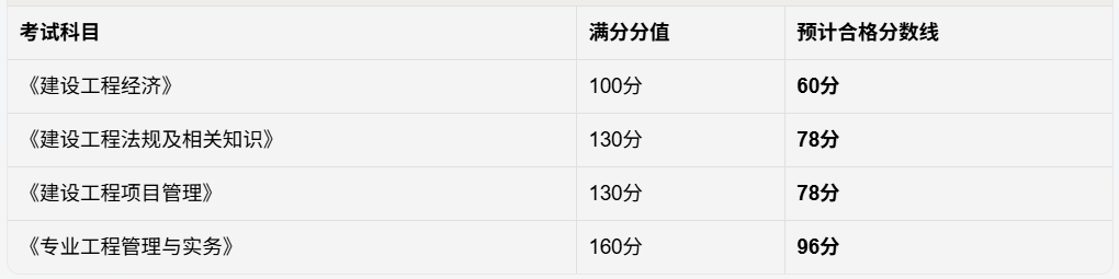 基于此原则,2025年一级建造师考试各科目的合格分数要求预计如下(参照满分比例计算):