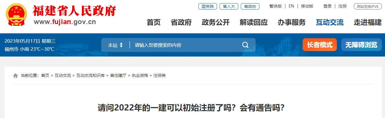 一、福建省2022年的一建可以初始注册了吗?会有通告吗?