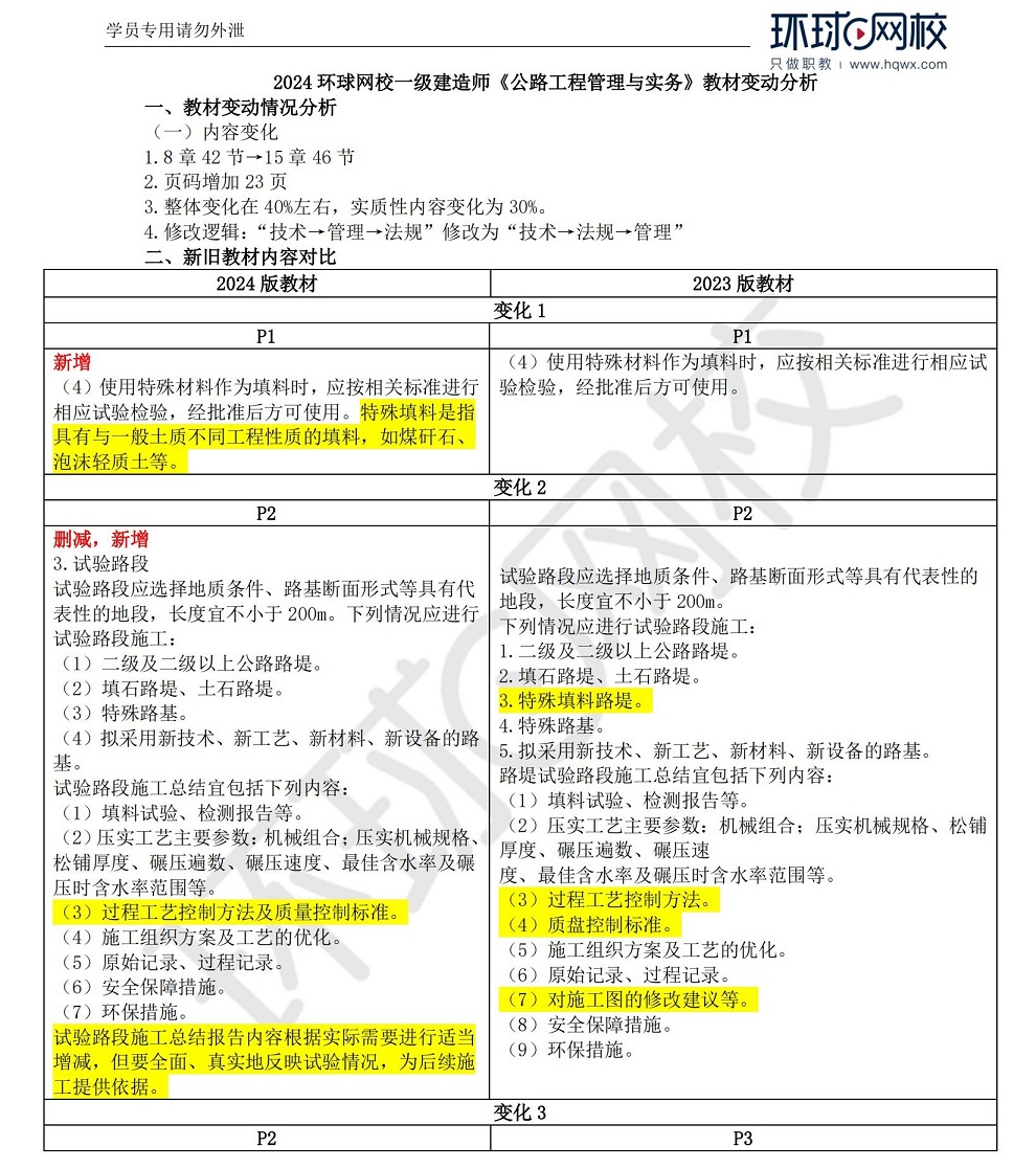 完整版2024一级建造师《公路工程管理与实务》教材变动分析下载地址:https://www.hqwx.com/ziliao/jzs/952372.html。