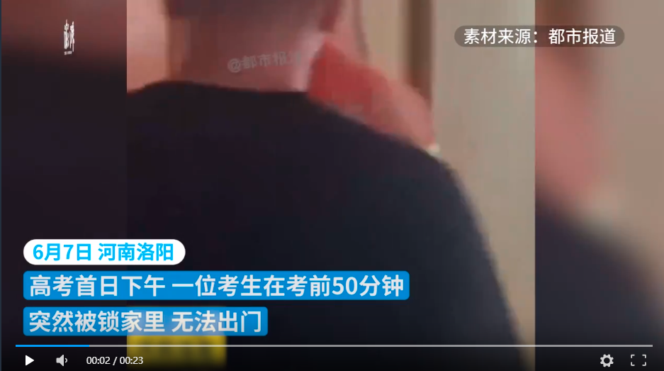 6月7日,河南洛阳。一位考生在考前50分钟突然被锁家里,无法出门。消防员“极速”破门救援。当得知距离考场还有十多公里,消防员让考生坐消防车奔赴考场到达考点。