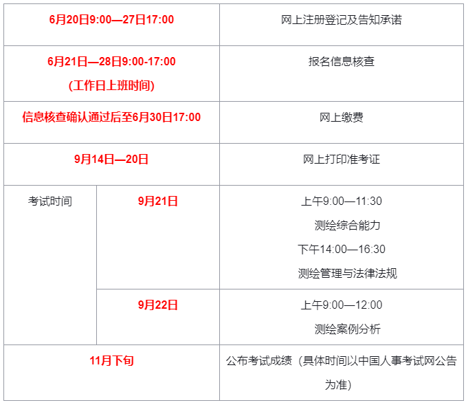近日,根据江西省人社厅发布的《关于做好2024年度注册测绘师职业资格考试江西考区考务工作的通知》,其中明确了2024年江西注册测绘师报名时间为6月20日—27日;缴费截止时间为6月30日17:00;准考证打印时间为9月14日—20日。