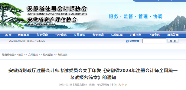 通知中关于安徽省2023年注册会计师全国统一考试报名简章详情如下: