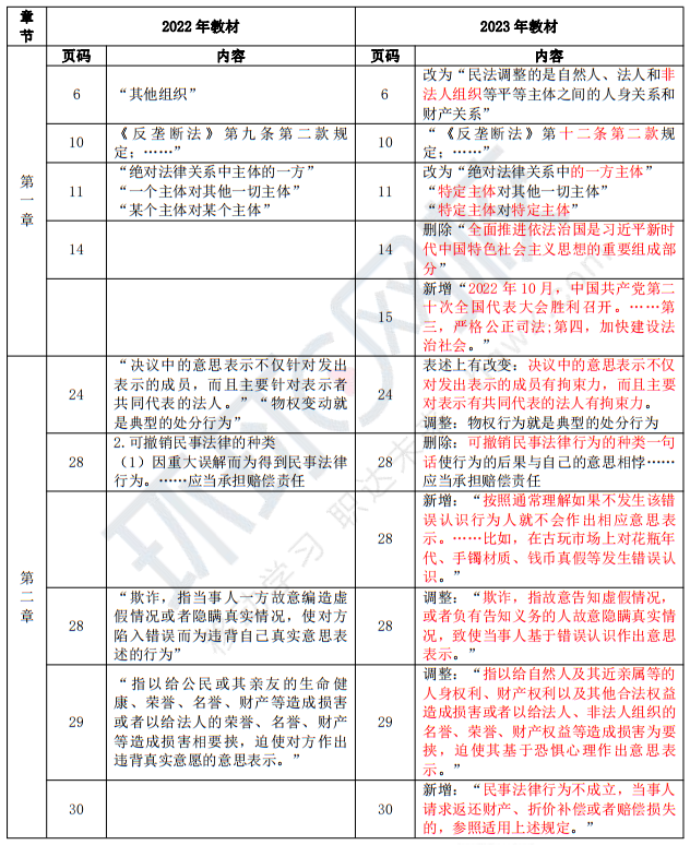 2023年注册会计师经济法教材变化对比解读详情如下: