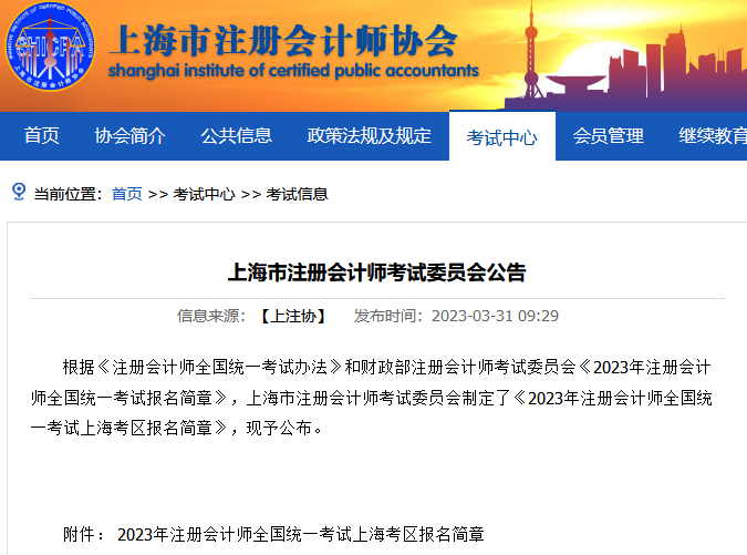 2023年3月31日,上海注册会计师协会发布了《 2023年注册会计师全国统一考试上海考区报名简章》,其中公布了2023年上海注册会计师报名时间在4月6日-28日。