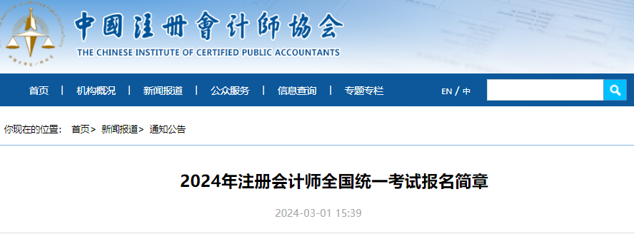 根据《注册会计师全国统一考试办法》,财政部注册会计师考试委员会制定了《2024年注册会计师全国统一考试报名简章》,现予印发。