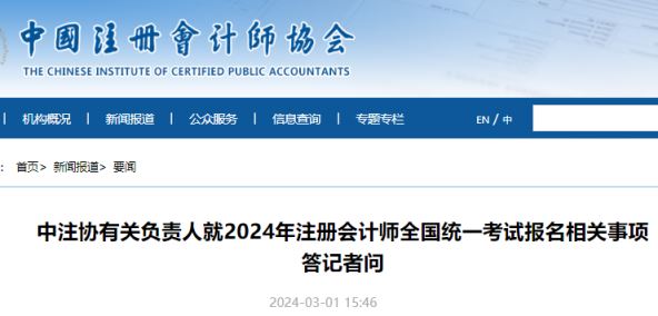 2024年注册会计师全国统一考试(以下简称注会考试)的报名简章和考试大纲已经发布,报名工作即将启动。中国注册会计师协会(简称中注协)有关负责人就广大考试报名人员普遍关心的问题,接受了记者采访。