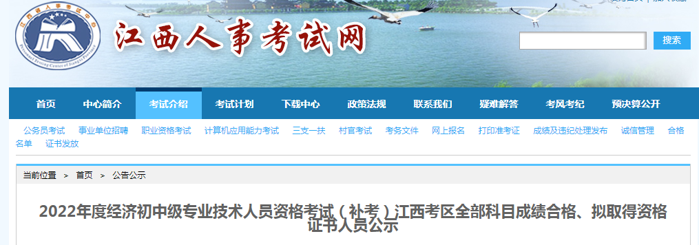 2022年江西初中级经济师补考成绩合格、拟取得资格证书人员的原公告如下