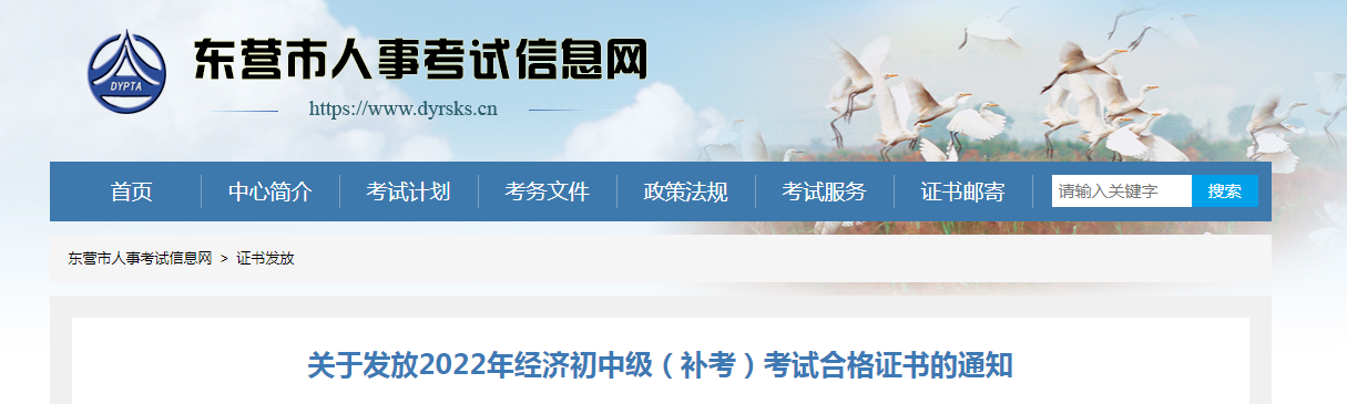 2022年山东东营市中级经济师补考合格证书发放的原公告如下