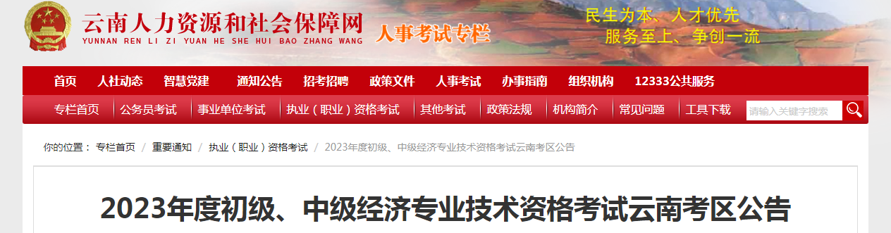 2023年度初级、中级经济专业技术资格考试云南考区公告
