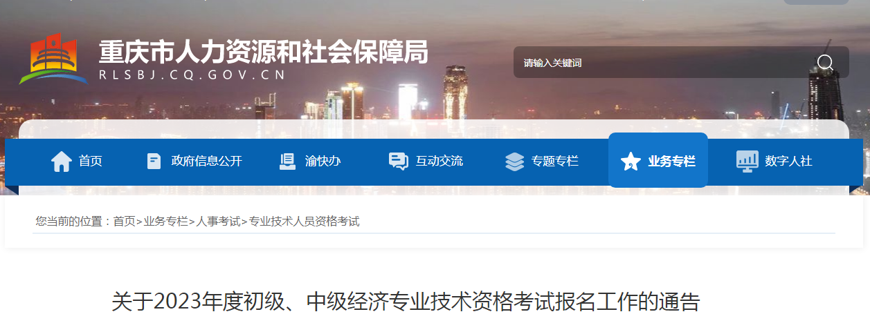根据人力资源和社会保障部人事考试中心《关于做好2023年度初级、中级经济专业技术资格考试考务工作的通知》(人考中心函〔2023〕37号)规定和重庆市人事考试中心《关于做好2023年度初级、中级经济专业技术资格考试考务工作的通知》(渝人考〔2023〕28号)的要求,为方便广大考生报考,现将有关事项通告如下: