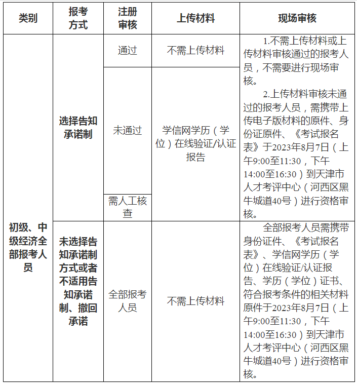 备注:(1)需要上传材料的报考人员于2023年7月26日0:00至8月4日24:00登录报名服务平台上传相关资料电子版,审核部门将于2023年7月27日9:00开始对上传材料进行审核。