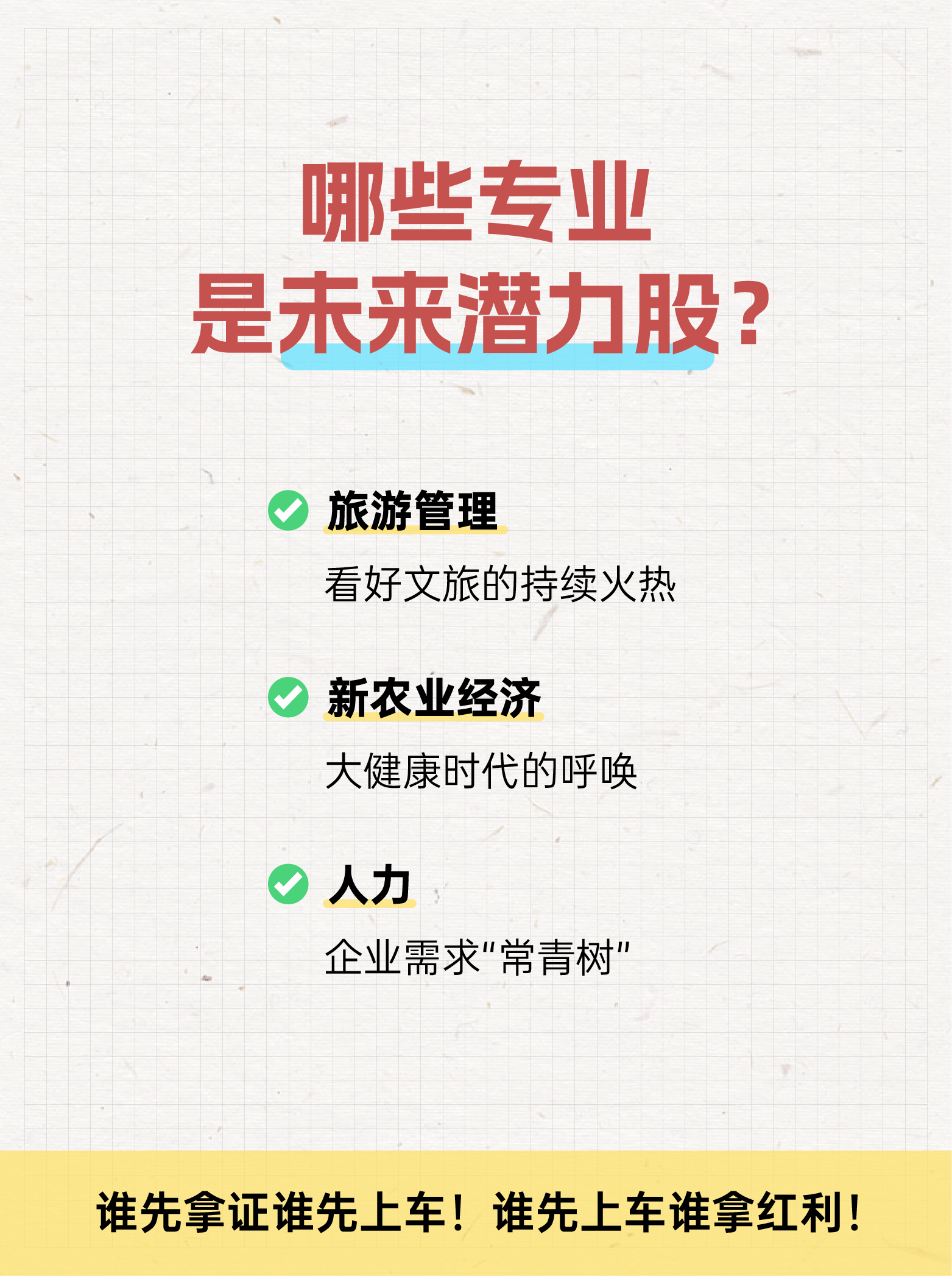 总之,中级经济师未来的潜力股专业可能会是旅游管理、农业经济和人力资源管理这三个专业。当然,选择专业还需要考虑个人兴趣、职业规划和市场需求等多方面因素。