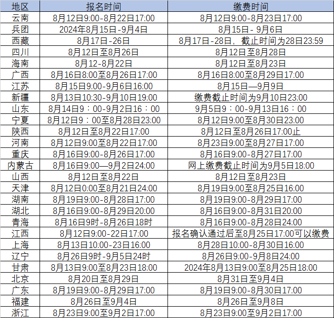 2024年中级经济师考试报名公告正在陆续发布中 ,全国各省市地区的大部分报名及缴费时间都已公布,以下是具体的内容: