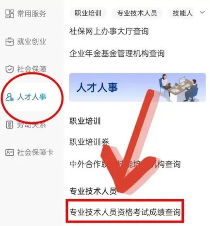 4. 查询成绩:选择“人才人事”,点击“专业技术人员资格考试成绩查询”,授权登录后,选择“考试年度”和“中级经济师”即可查看成绩。