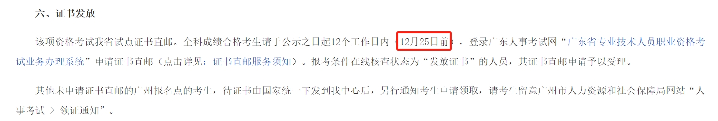 注意:2024广州中级经济师证书直邮申请截止12月25日,考生们务必在此日期前完成相关申请,以免影响证书的及时领取。同时,考生应根据个人实际情况,选择合适的证书领取方式,并确保所提交的所有信息真实无误,以免影响证书的发放。考生们应及时关注广州市人力资源和社会保障局网站的最新通知,确保不错过任何重要信息。