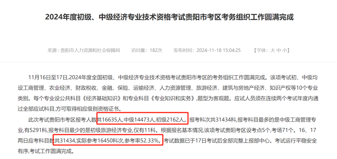2024年初中级经济师考试已经结束,贵阳市也随之公布了当地今年的报考人数及参考率。根据发布的考试情况数据信息,我们发现:部分场次的参考率甚至低至52.33%,也就是说竟有一半考生缺考。每次考试都有一部分考生被拦在考场外,也无形中降低了参考率。所以说,这次去考试,并且顺利参加了考试的同学,也都要为自己鼓鼓掌。