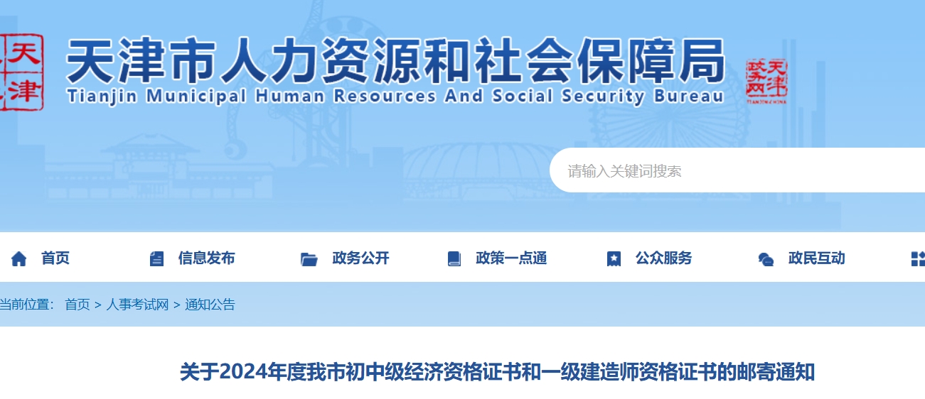 天津市人力资源和社会保障局已于2025年1月16日发布通知,2024年度天津市初中级经济资格证书和一级建造师资格证书的邮寄网上预定工作已结束,证书已交邮局分装,预计将于本周寄出。这意味着2024年天津中级经济师考试合格证书也已踏上“旅程”,考生们可以开始关注邮件的投递进度了。