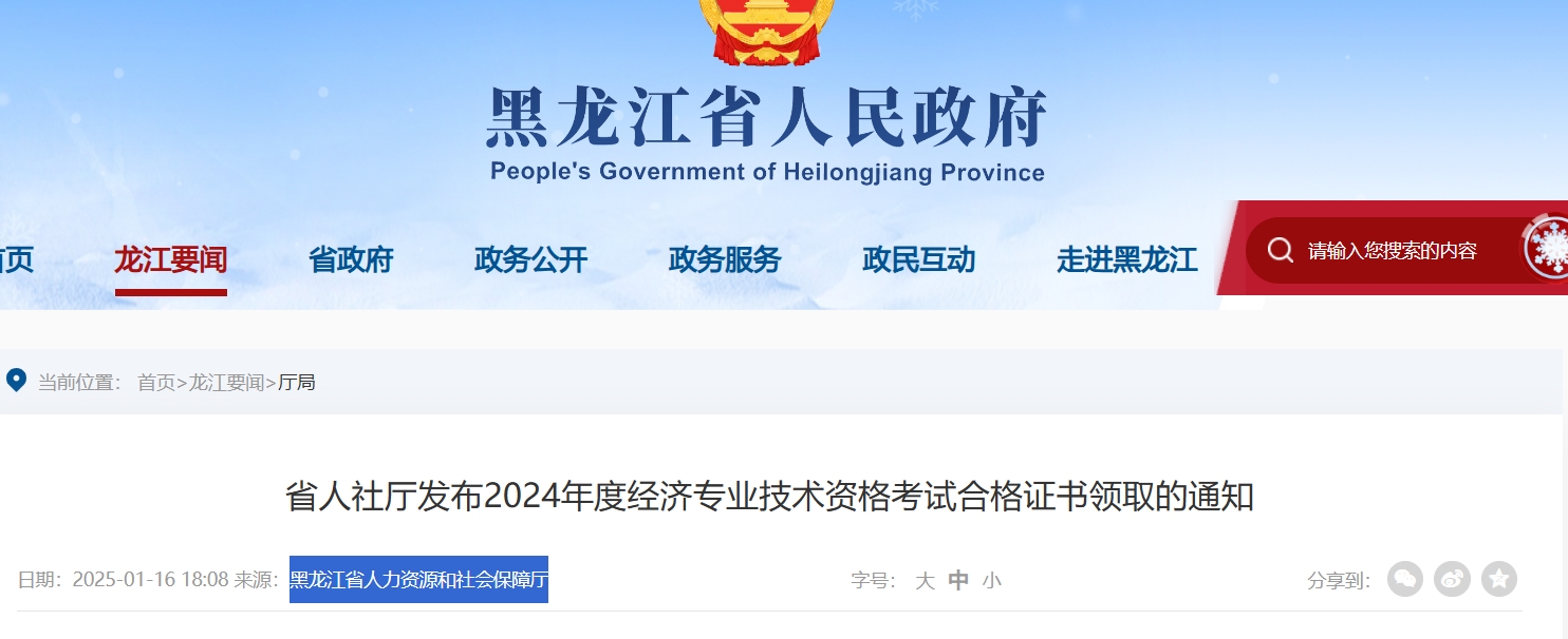 黑龙江省人事考试中心于2025年1月17日开始发放2024年度经济专业技术资格考试合格证书,现将有关事宜通知如下: