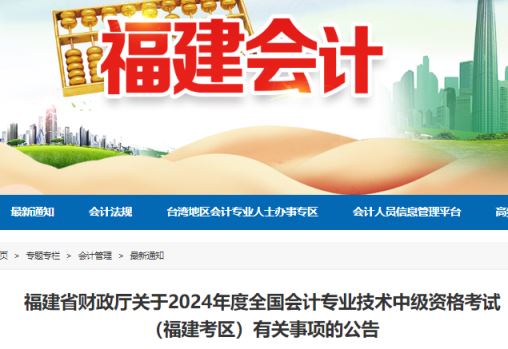 4月11日,福建省财政厅发布了《2024年度全国会计专业技术中级资格考试(福建考区)有关事项的公告》,其中明确2024年福建中级会计报名时间6月12日至7月2日,缴费统一在7月2日18:00截止,考试时间为9月7日至8日举行,共2个批次,具体福建中级会计报名条件、报名地点、考试科目、报名网站、考试时间等内容请阅读本文。