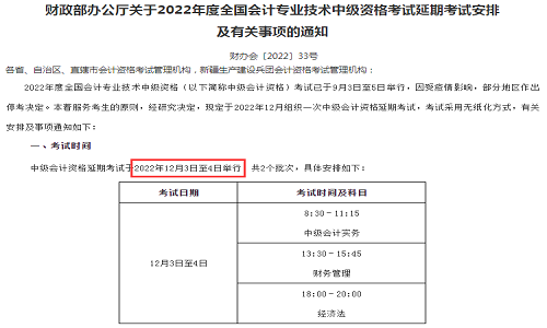 (二)2022年12月3日至4日组织中级会计资格延期考试。