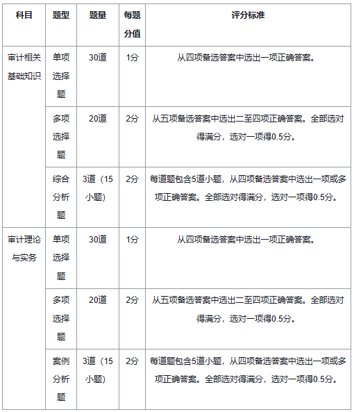 三、初中级审计师考试题型、分值分布说明