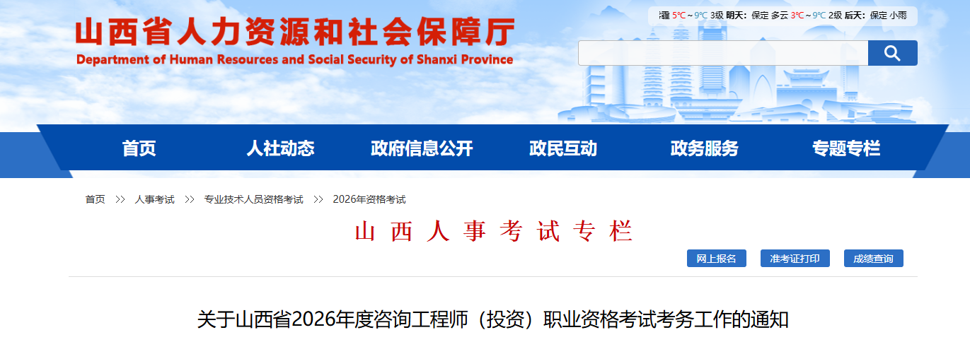 2月24日,山西省人力资源和社会保障厅发布了“关于山西省2026年度咨询工程师(投资)职业资格考试考务工作的通知”,通知公布:2026年山西咨询工程师报名时间为2月28日-3月6日;缴费时间为2月28日至3月7日;准考证打印为4月7日至4月10日;资格审核:考试成绩发布后另行通知。