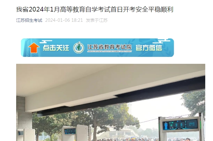 我省2024年1月高等教育自学考试于1月6日顺利开考。全省共报考17.86万人次、37.8万科次,共设考点96个、考场3642个。全省各地考风考纪良好,考试组织平稳、安全有序。