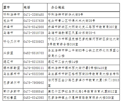 附件:内蒙古自学考试有关盟市招生考试机构联系方式