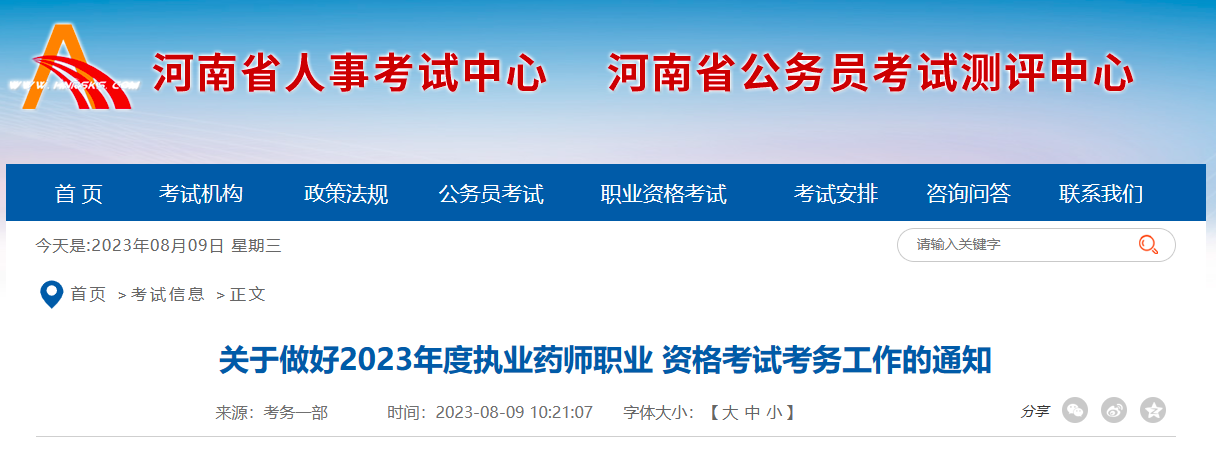 为做好我省2023年度执业药师职业资格考试考务工作,根据《人力资源社会保障部办公厅关于2023年度专业技术人员职业资格考试计划及有关事项的通知》(人社厅发〔2023〕3号)、人力资源和社会保障部人事考试中心《关于做好2023年度执业药师职业资格考试考务工作的通知》(人考中心函〔2023〕44号)精神,现将有关事项通知如下: