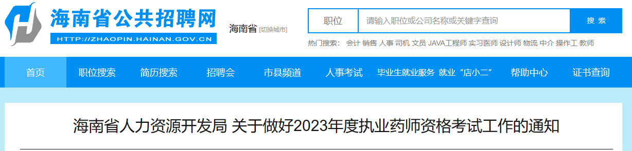 海南省人力资源开发局关于做好2023年度执业药师资格考试工作的通知