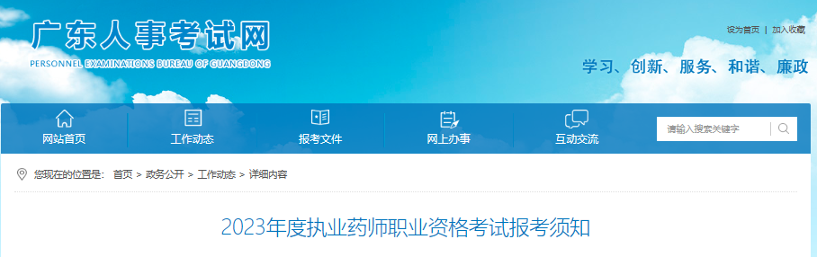 根据人力资源和社会保障部人事考试中心《关于做好2023年度执业药师职业资格考试考务工作的通知》(人考中心函〔2023〕44号)和广东省人力资源和社会保障厅《关于广东省人力资源社会保障系统2023年度专业技术人员职业资格考试计划及有关事项的通知》(粤人社函〔2023〕31号)要求,为方便广大考生报考该项考试,现将有关事项告知如下。