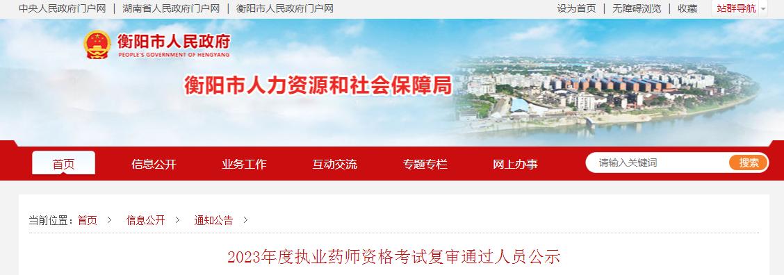 根据衡阳市人力资源和社会保障局发布的《2023年度执业药师资格考试复审通过人员公示》得知,2023年湖南衡阳执业药师资格考试复审通过人员公示时间为2023年12月22日至2023年12月28日。
