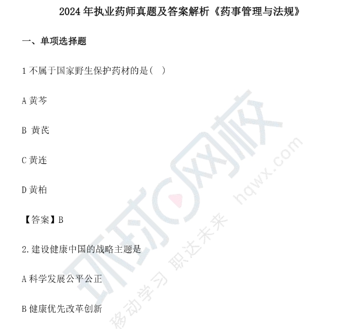 考生可以在本篇文章下方,找到“真题”,电脑端点击“立即下载”,手机端点击“网盘链接”来免费获取2024年执业药师考试真题及答案。